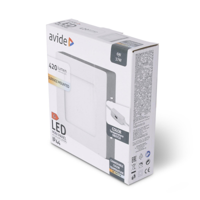 LED Falra Szerelhető Négyzetes Mennyezeti Lámpa 6W, CCT kapcsolóval, ALU, IP44 Front